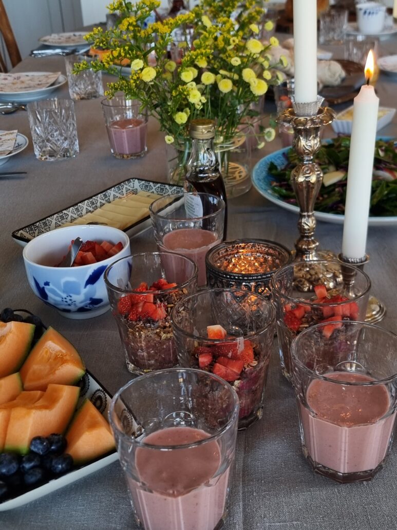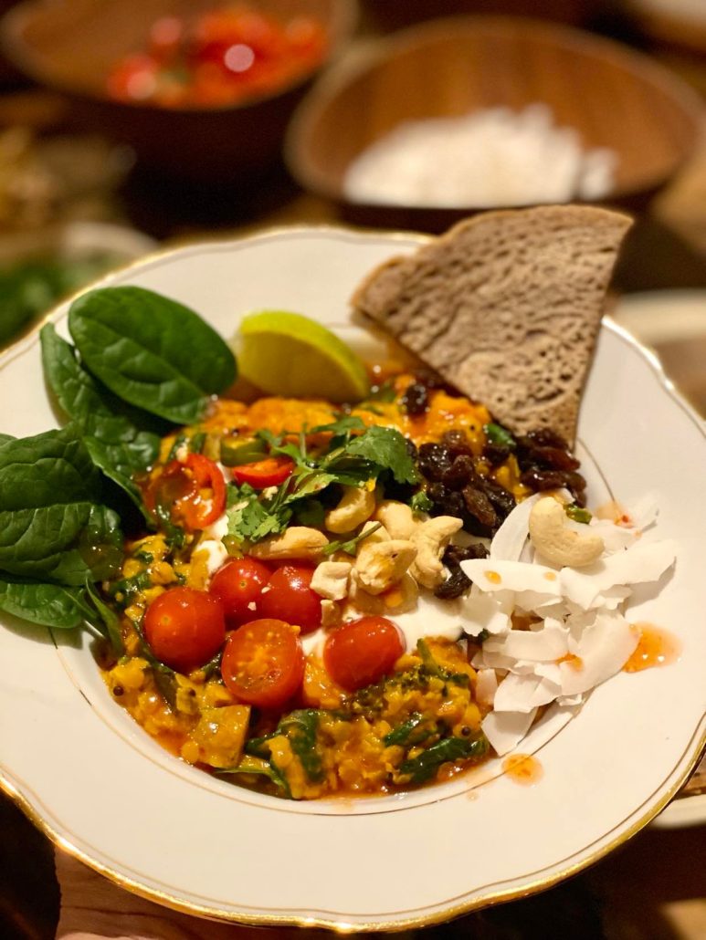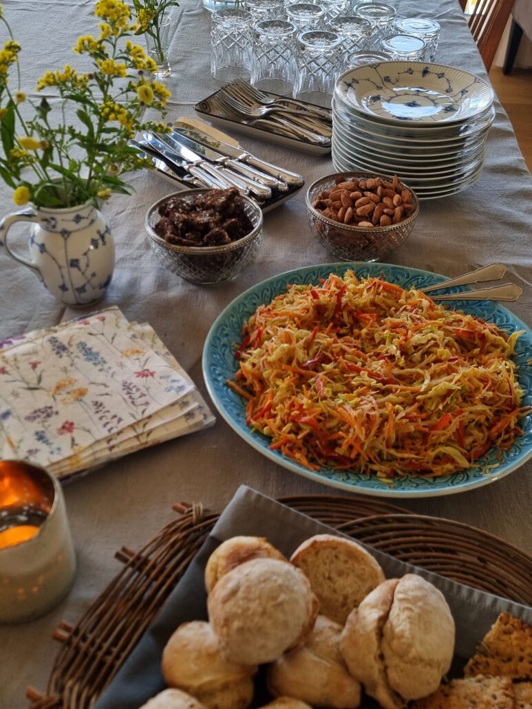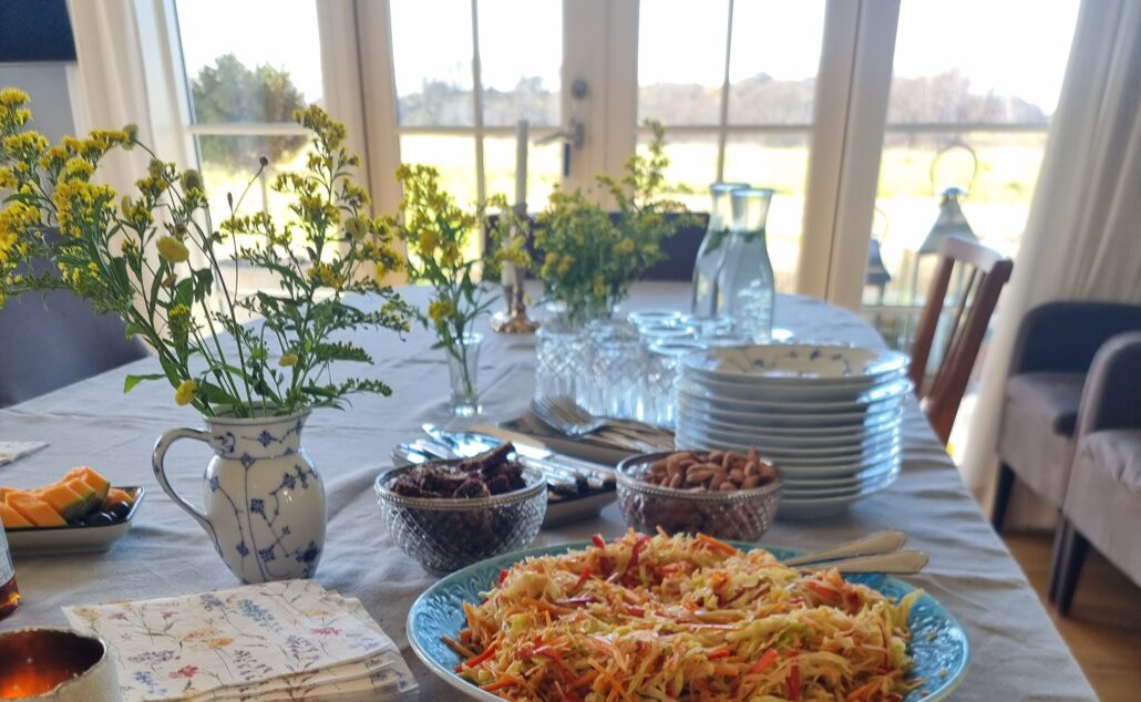 Når vi meditere skal vi selfølgelig forkæles med nærende og sund kost, så det smelter sammen med den nærværende atmosfære på retreatet.
